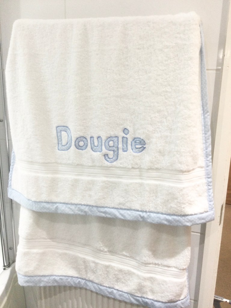 How about welcoming a new member of the family with their own named bath towel?